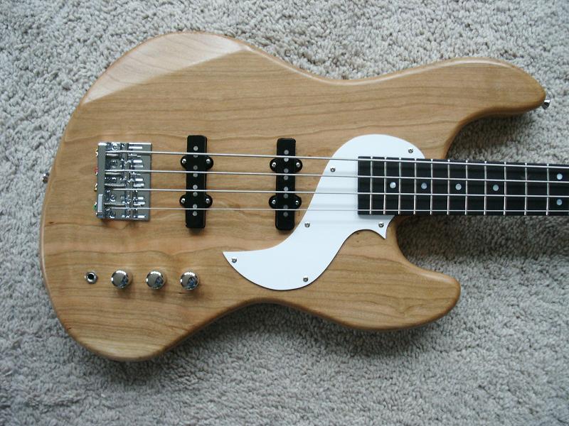 De eerst basgitaar helemaal zelf gemaakt thuis, een telecasterbas met toests van ebbenhout.