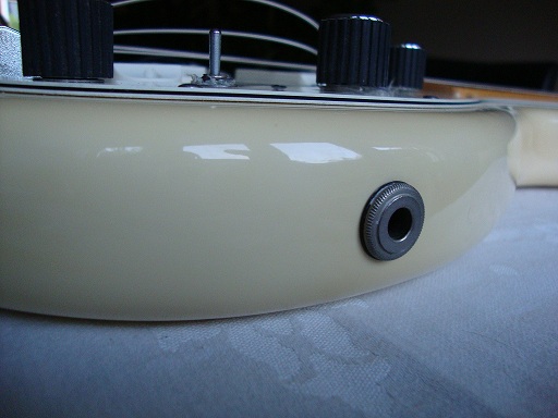 The output jack is mounted on the side of the body. Schaller deluxe tuners and Schaller strap locks came standard.
